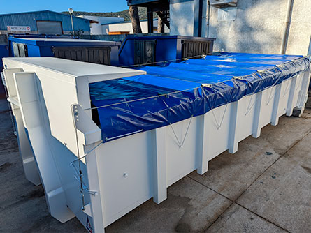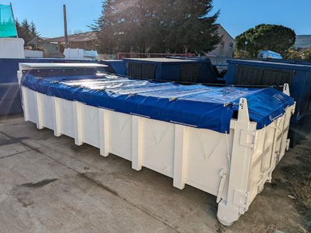 Bâche coulissante sur câble et caquette de protection pour benne gravats ou TP
